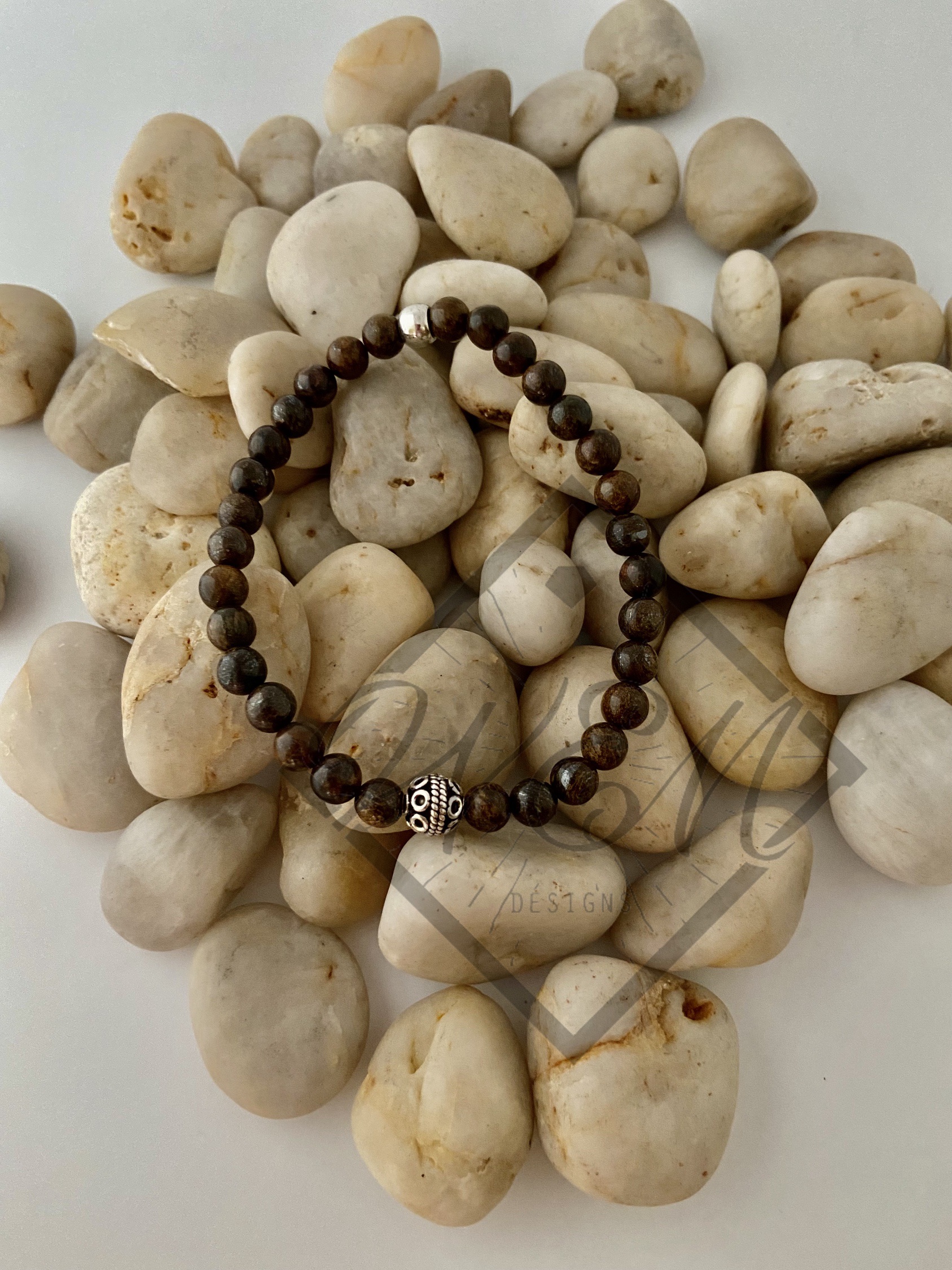 Perfect addition to your bracelet collection, this stylish Aaron stretch bracelet features bronzite gemstones showcasing a sterling silver Bali bead.