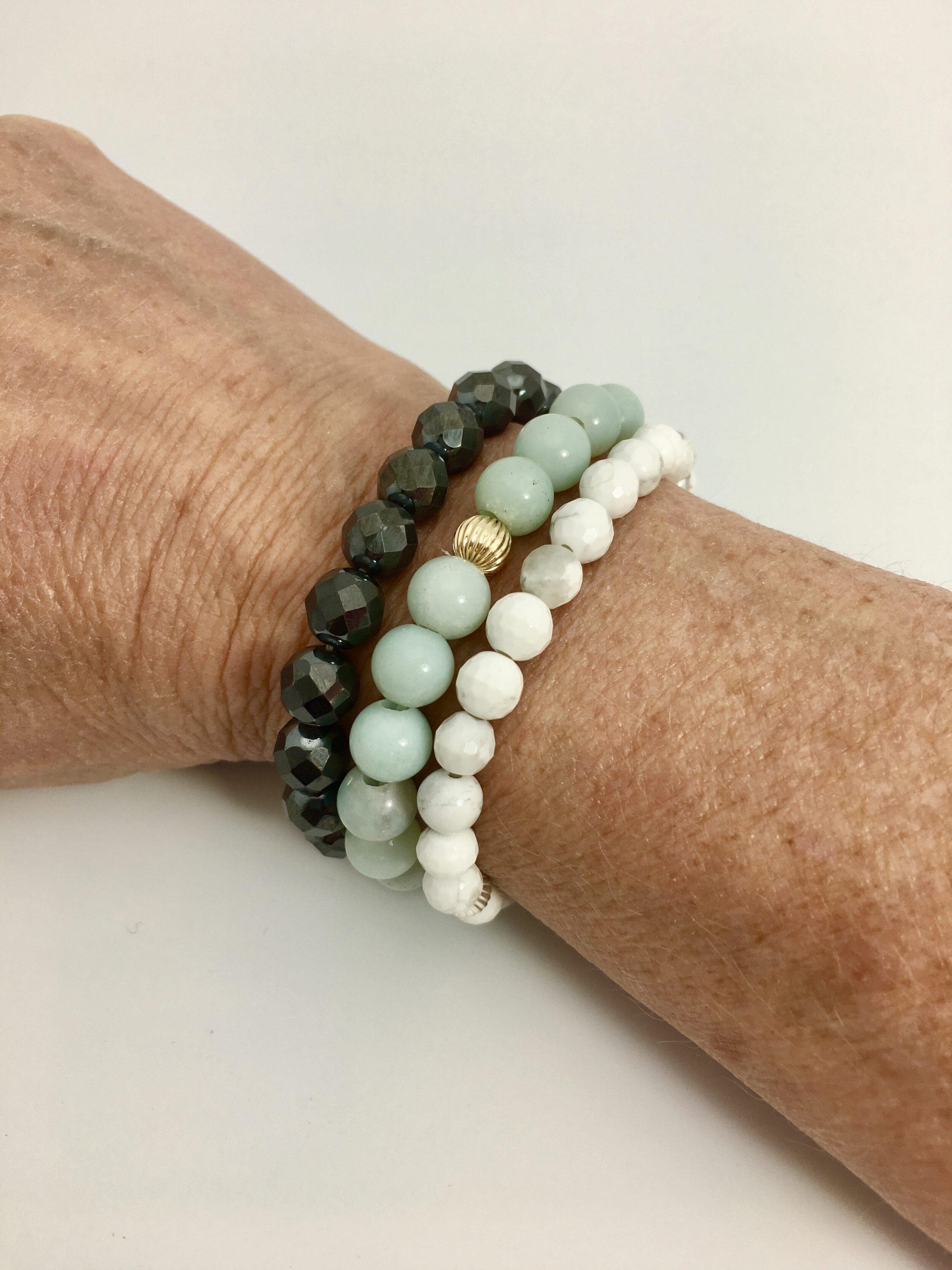 If you are drawn to the Hematite crystal, it could be a sign that you are in need of grounding and balancing in your life. Â As soon as the Hematite crystal touches the skin, you’ll feel more centered and calm. Wear it daily to remind you of your intention. Â Give as a gift and add a personal note to express your intention in giving this handmade gift. Marry it with the landscape patterns of other healing bracelets and you have a roadmap for life.