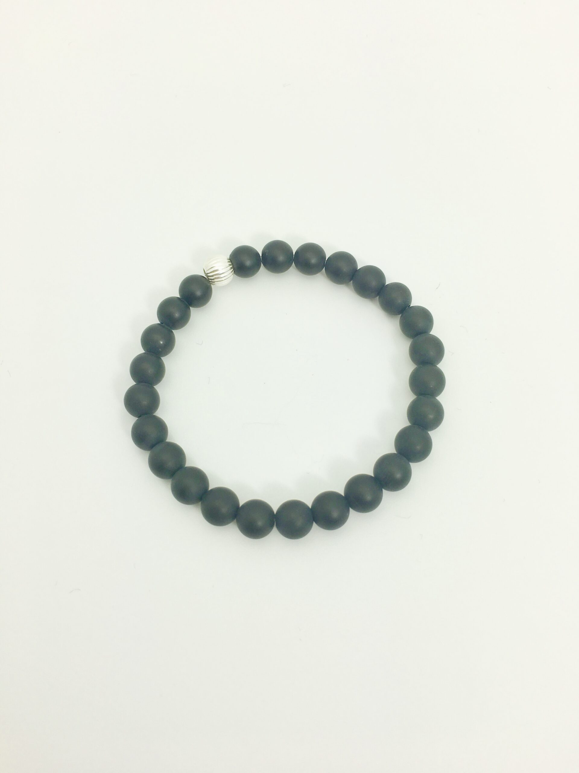 Perfect for layering into your bracelet collection, this stretch bracelet design features black onyx gemstones (matte finish) and a sterling silver bead.
