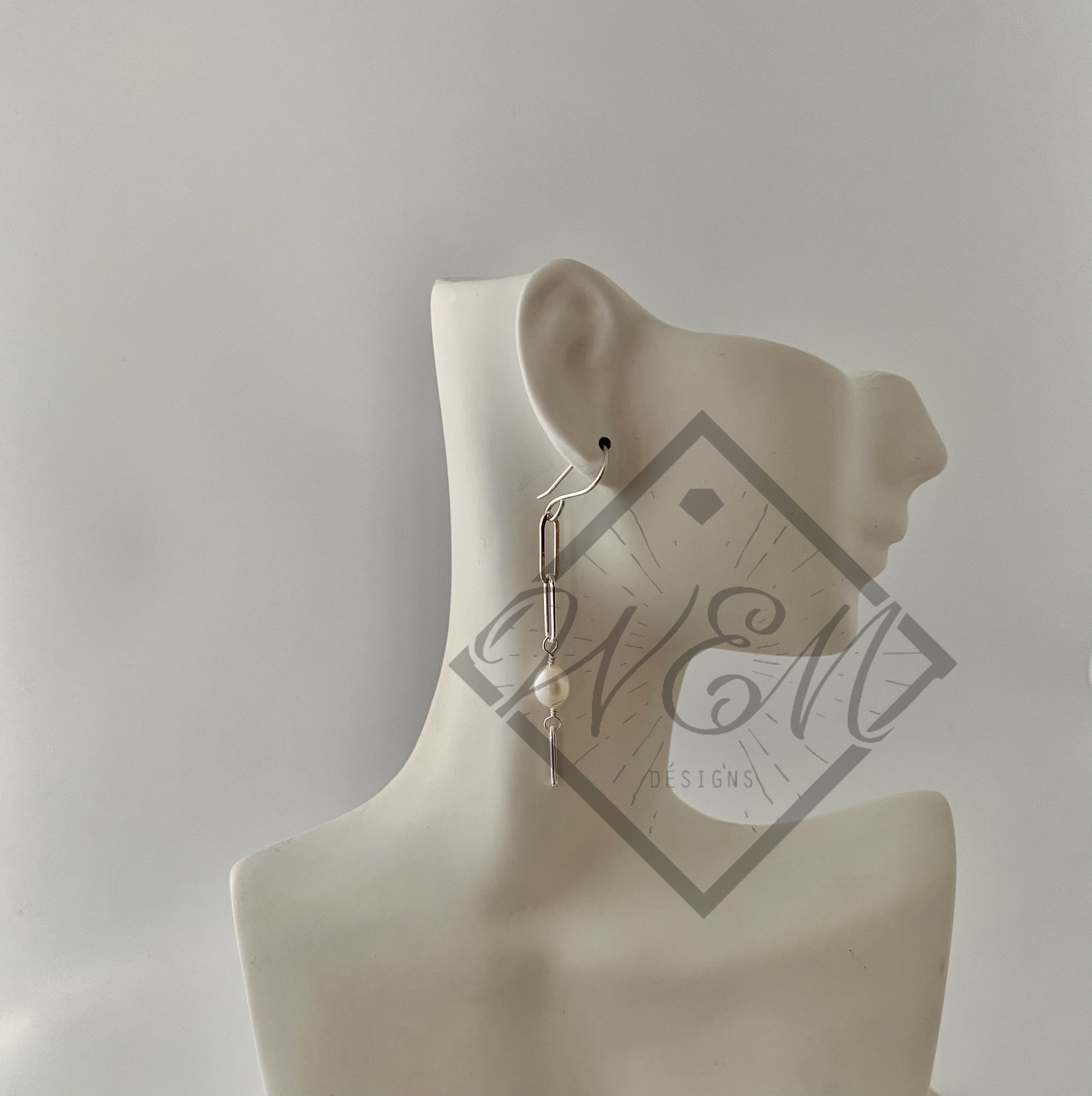These pearl dangle earrings are the earrings you didn’t know you needed – a rare design that goes with everything and suits everyone. Lustrous, white freshwater pearls are suspended on sterling silver chain with French style ear wires. Effortlessly chic, these earrings make meaningful jewelry gifts, perfect for everyday wear.