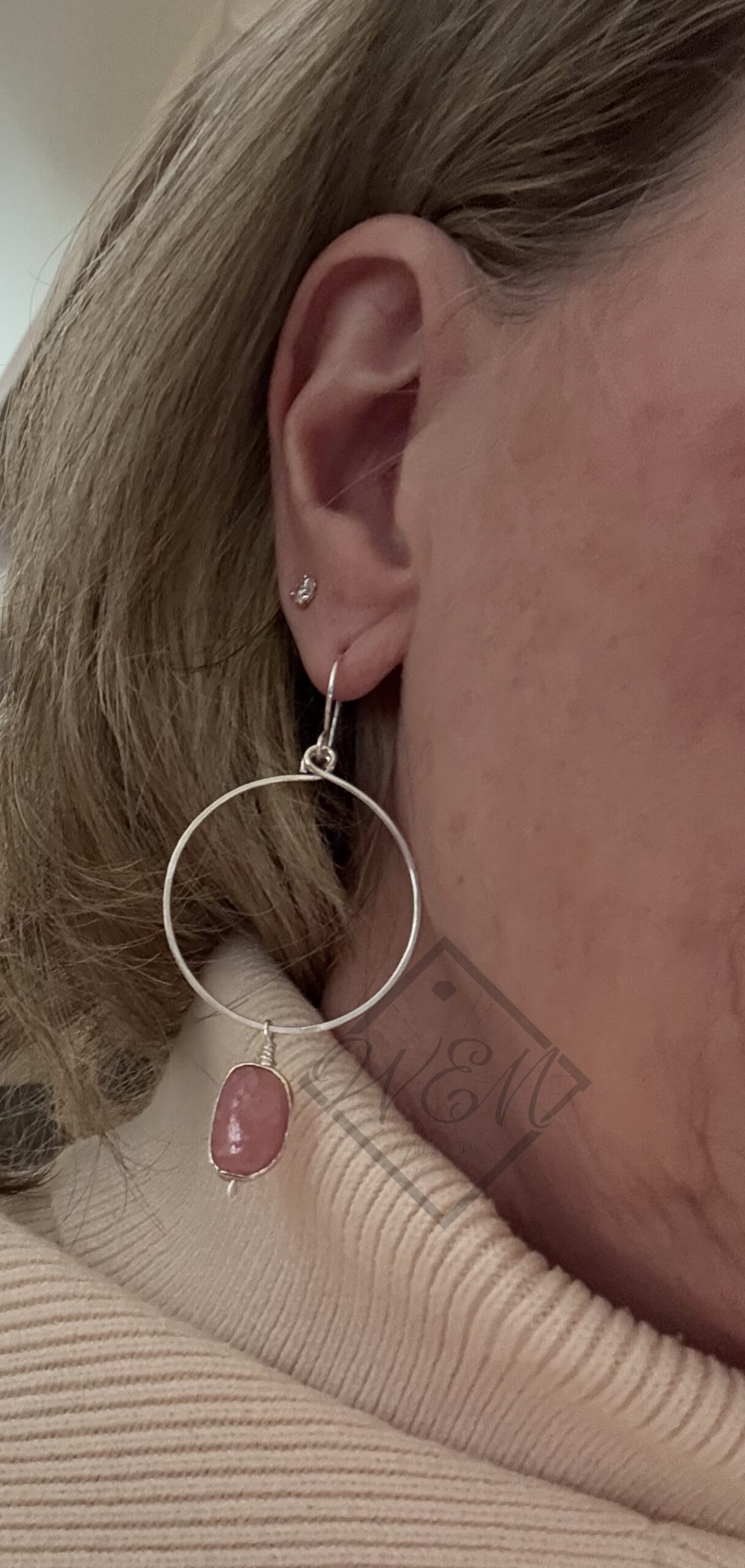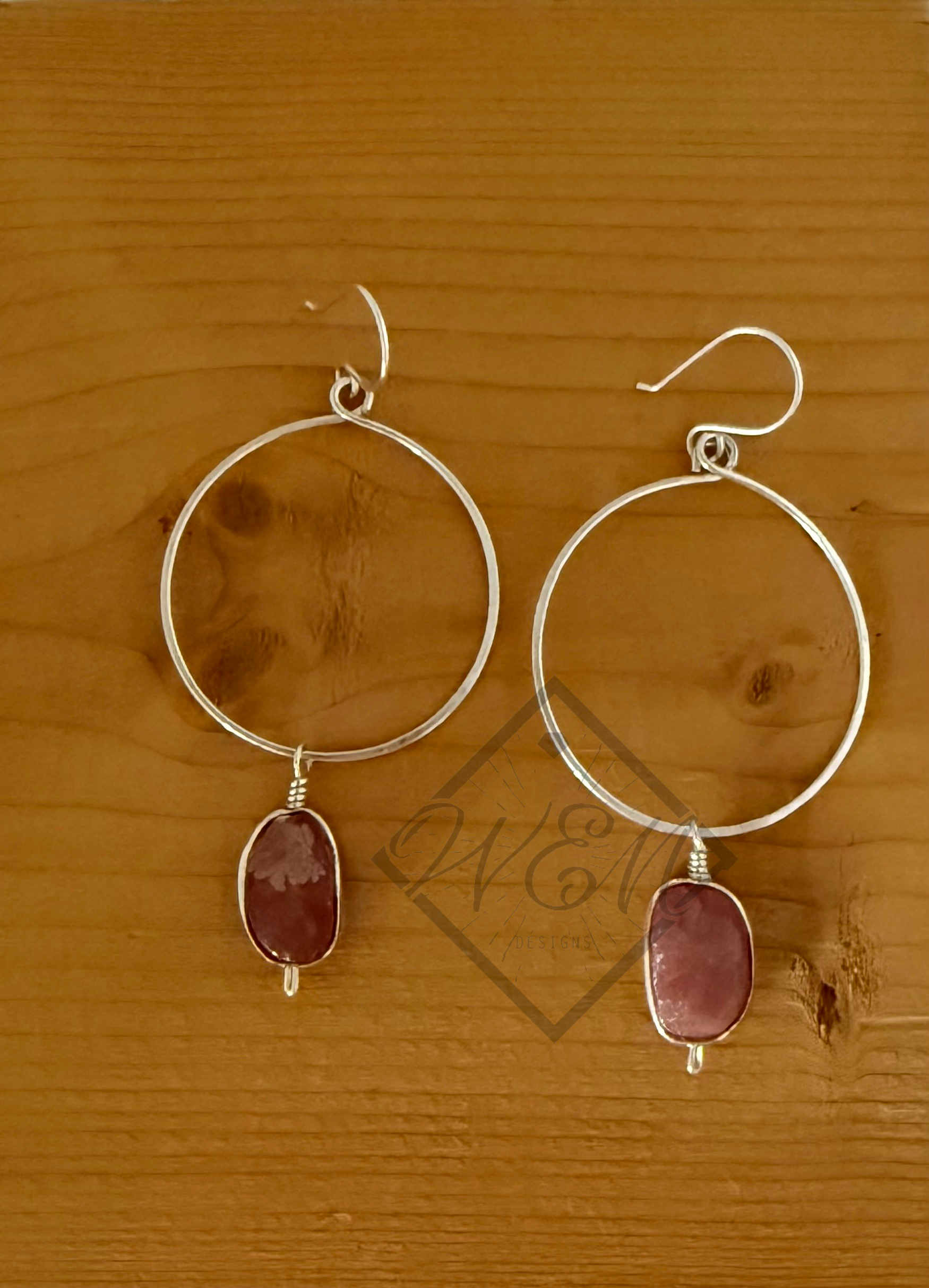 Make a statement with these large hoop earrings. This lightweight design features a rhodochrosite gemstone framed in sterling silver. Finished with a sterling silver French style ear wire for comfortable all day wear.
